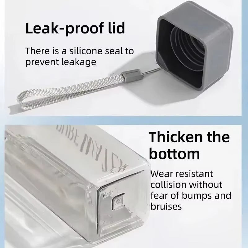 1 Pcs Clear Square Drinking Glass in Mate Plastic Portable Water Bottle with Milk Cable for Outdoor Sports