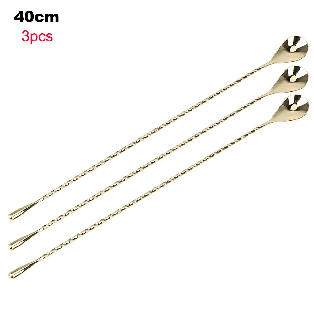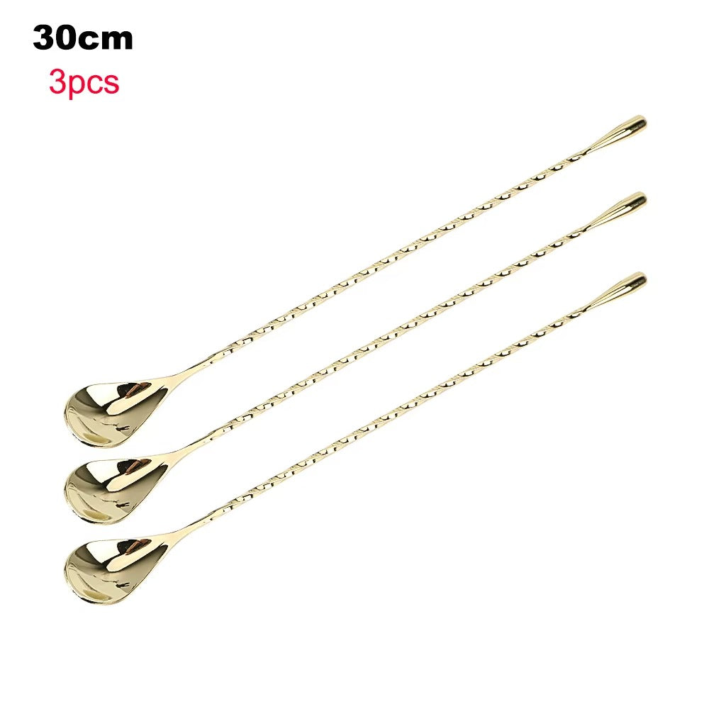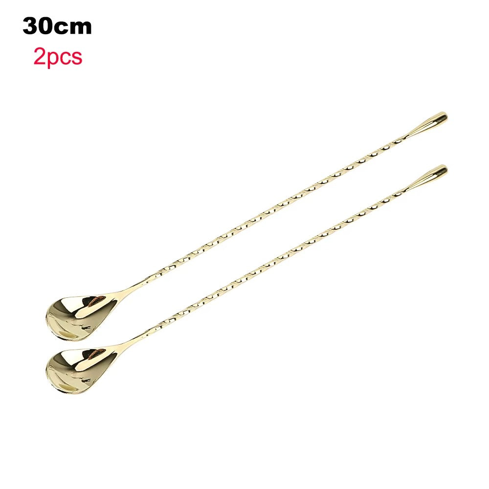 HILIFE 30/40cm Stainless Steel Stir Bar Spoon Mixing Ounces Cocktail Spoon Spiral Pattern Bartender Tools Teadrop Spoon Bar Tool
