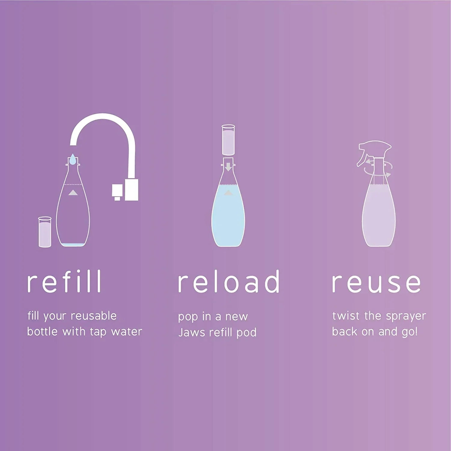 JAWS Cleaner Shower Cleaner Bottle with 2 Refill Pods. Refillable Cleaning Supplies.