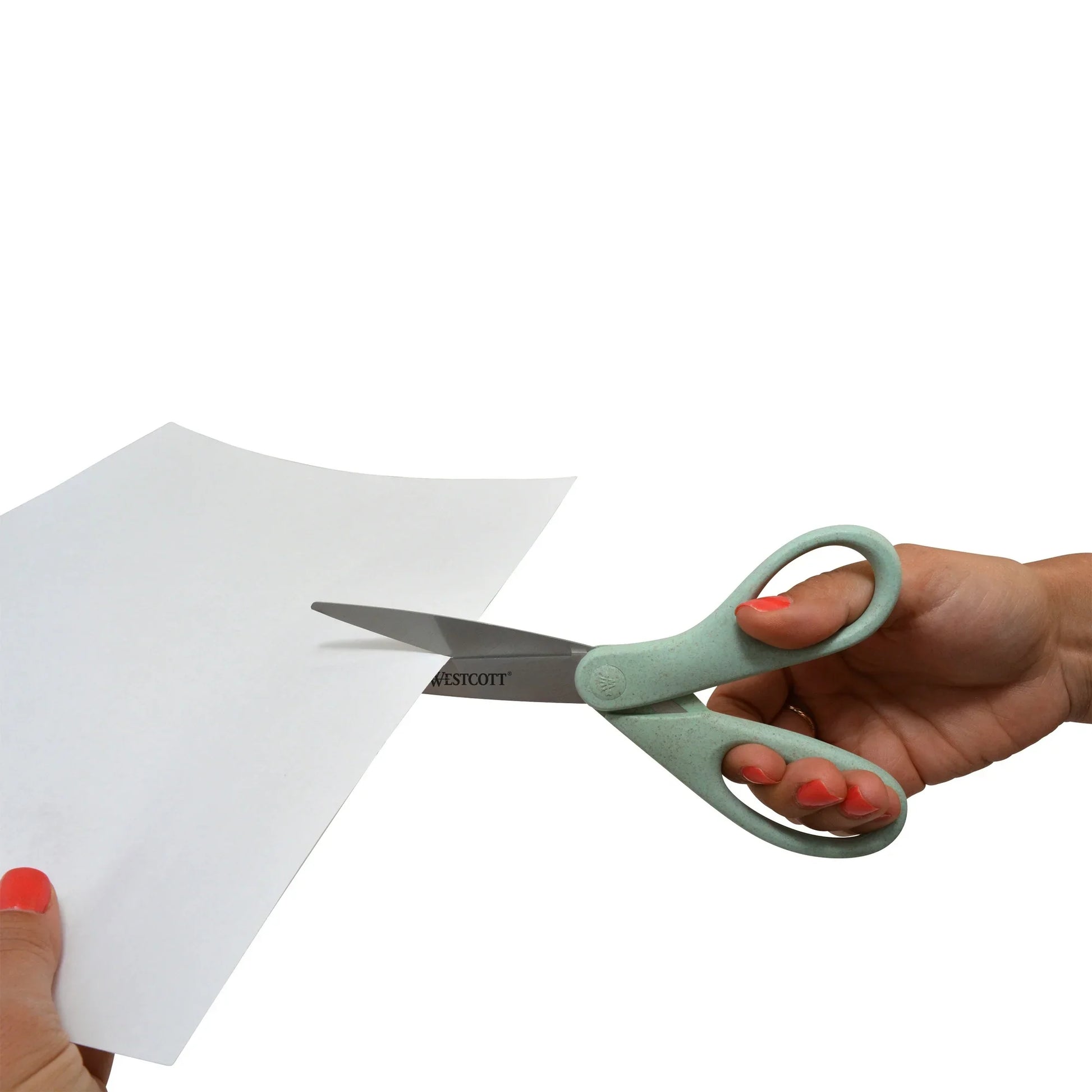 Office Westcott Crafting Scissors, KleenEarth, 8", Straight, Eco-Friendly, Rice Husks, Blue, 1-Count