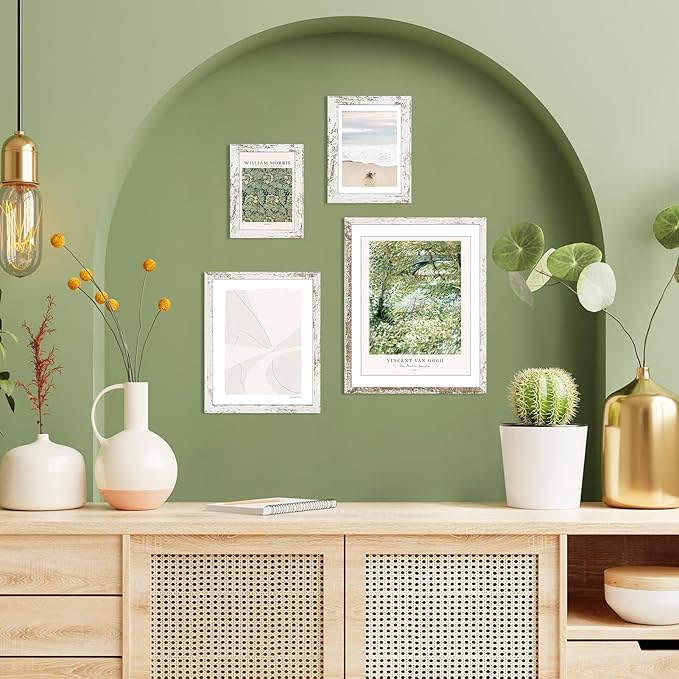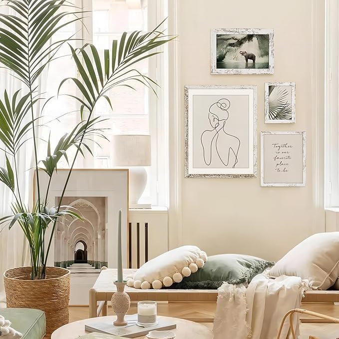 TWING 8x10 Rustic Picture Frames Set of 6 Distressed White Composite Wood Farmhouse Photo Collage Frame For Wall Decor Gallery Wall Frame Set Mounting or Table display, Ideal Valentine Gifts for